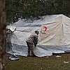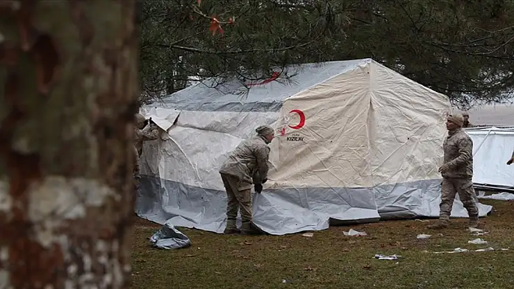 Açıklamaya göre, bölgeye sevk edilen çadırlar, Mehmetçik ve gönüllülerin desteğiyle kurulmaya başlandı.