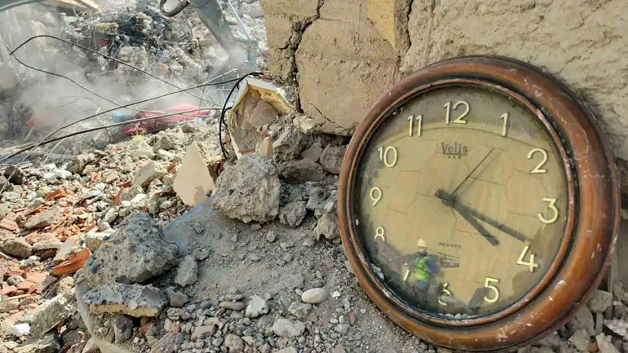 Çalışmalar sırasında ekip Refik Kocabıyık'ın enkaz ve demir yığınları arasında bulduğu saatin, 04.17'de durduğunu görünce büyük üzüntü yaşadı. Kenara koyulan duvar saatinin camına arama kurtarma çalışmalarının yansıdığı anlar deprem anının kötü göstergesi olarak Hikmet Şen'in, objektifine böyle yansıdı.