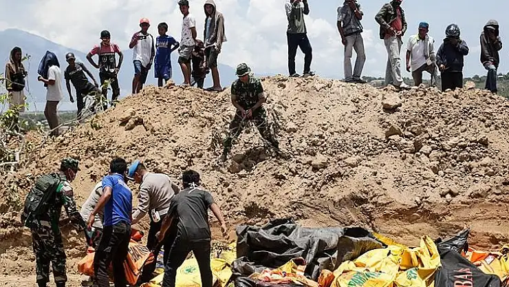 Can kayıplarının fazla olduğu Merkez Sulawesi eyaletinin başkenti Palu'da, enkaz altından çıkarılan naaşların gömülebilmesi için toplu mezar hazırlandığı bildirdi.