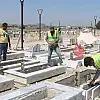 Hatay'da depremde yaşamını yitirenlerin defnedildiği mezarlığın 'Deprem Şehitliği' olarak düzenlenmesi çerçevesinde kabirler belediyenin çalışmasıyla tek tip hale getirilmeye başlandı.