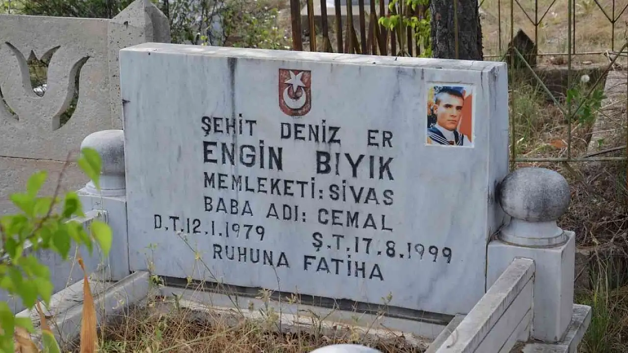 Marmara depreminde Gölcük'te ki binliğinde enkaz altında kalarak şehit olan Sivaslı Deniz Er Engin Bıyık mezarı başında anıldı.