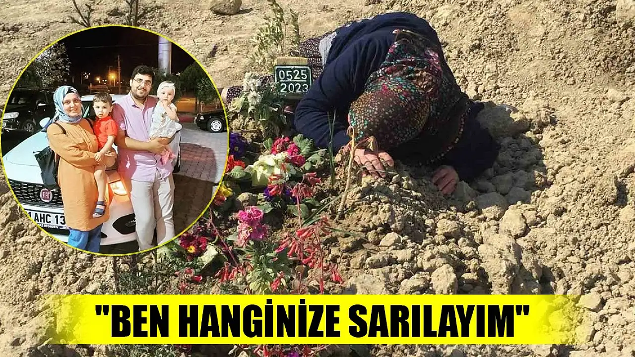 Depremde iki kızı, bir torunu ve damadını kaybeden annenin, mezara sarılıp öperek, "Ben hanginize sarılayım, hanginizle hasret gidereyim. Ben sana gelinlik giydirecektim kefen giydin" diyerek gözyaşlarına boğulması yürekleri dağladı.