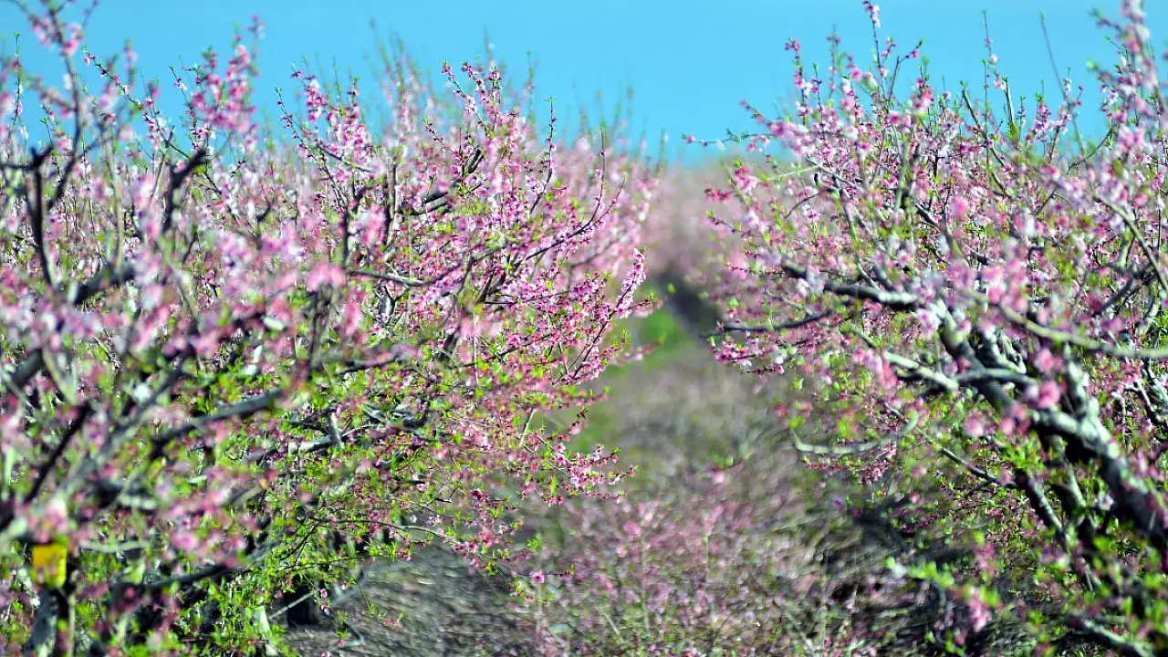 AMİK Ovası'nda baharın gelmesiyle birlikte çiçek açan şeftali bahçeleri, görsel şölen oluşturdu.
