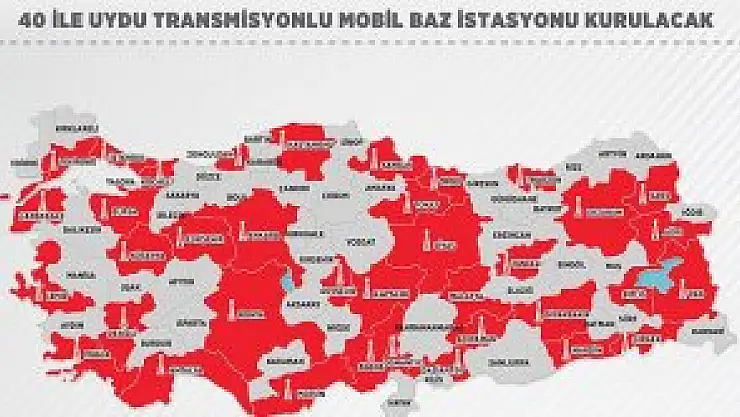 Afetlerde, baz istasyonlarının zarar görmesi veya yetersiz kalması durumunda artan haberleşme talebini karşılamak üzere 25 ilde bulundurulması kararlaştırılan uydu transmisyonlu mobil baz istasyonu sayısı 40 şehre konumlandırılacak.
