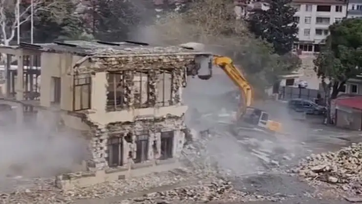Depremde hasar gören tarihi Hatay Valiliği binasının yıkımı gerçekleşti
