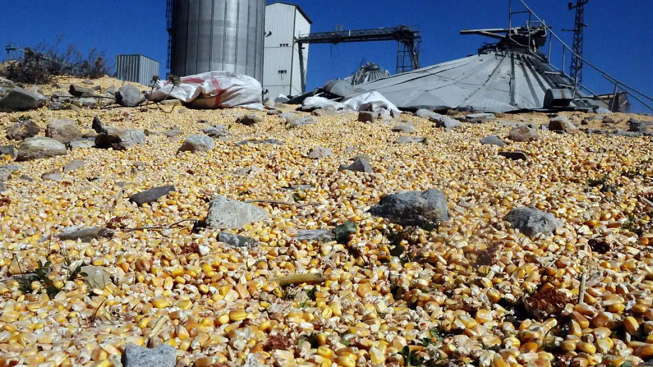 Gaziantep'in Nurdağı ilçesindeki Toprak Mahsulleri Ofisi'nin (TMO) siloları da depremde yıkıldı, tonlarca mısır çevreye saçıldı.