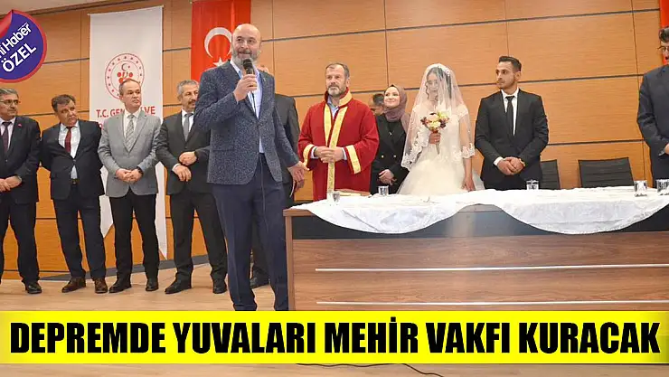 Depremzede gençlere el uzatan Mehir Vakfı, deprem bölgesindeki gençleri evlendirecek ve ev eşyası ihtiyaçlarını karşılayacak. Mehir Vakfı Mütevelli Heyet Başkanı Mustafa Özdemir, depremden etkilenen 11 ilde evlenecek çiftelere destek olacaklarını belirterek, 'Daha önce Van depreminde yaptığımız gençleri evlendirme projemizi genişleterek 11 ilde uygulayacağız. İlk etapta asgari 1100 çiftçimizi evlendirmeyi planlıyoruz. Mehir Vakfı olarak evlenmek isteyen gençlerimizin düğünlerini yapacağız' dedi