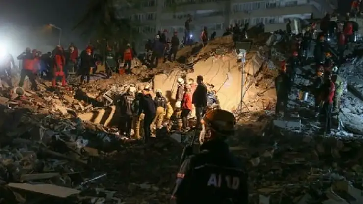 Depremin en fazla yıkıma neden olduğu Bayraklı ilçesinde 8 katlı Rıza Bey Apartmanı'na ait enkazda arama kurtarma çalışmaları devam ediyor.