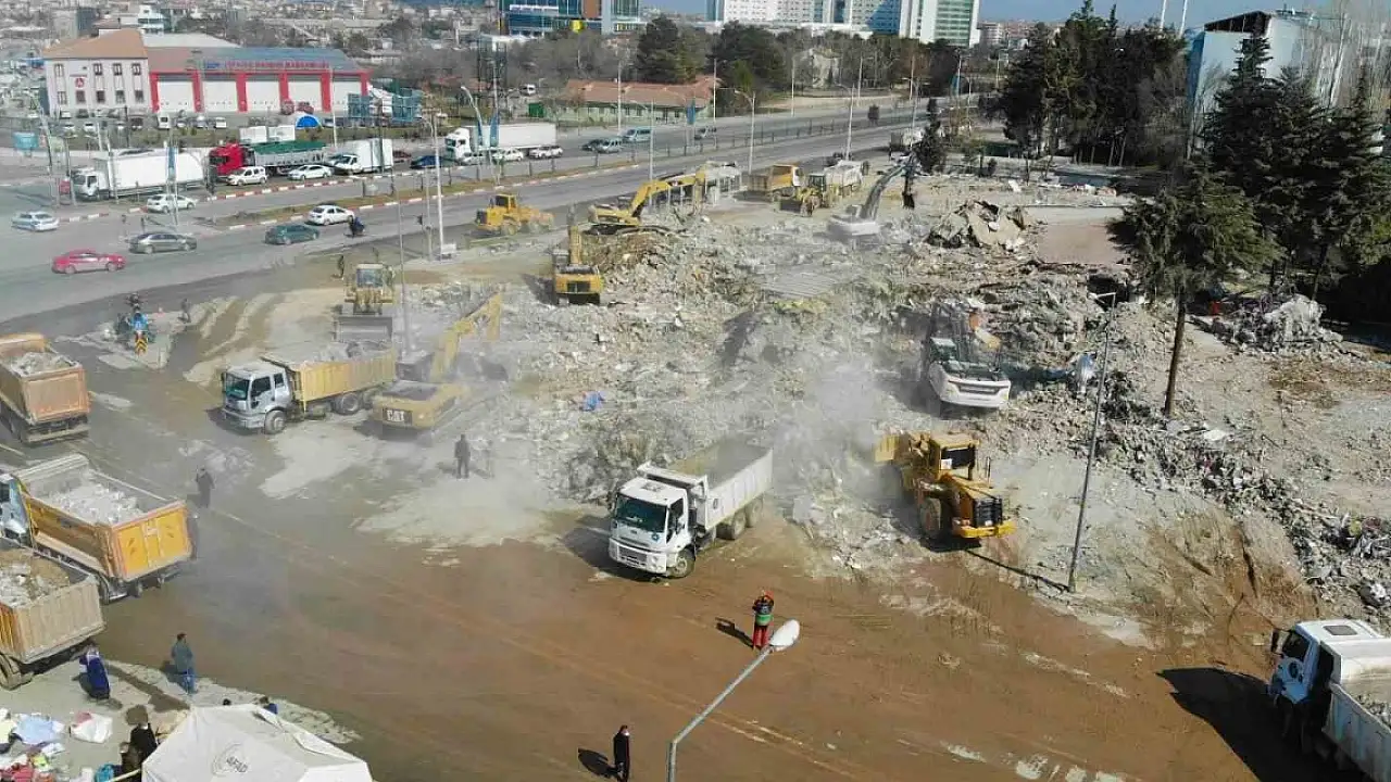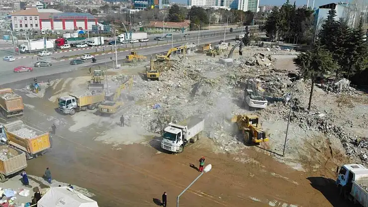 Malatya'da depremin 21'inci gününde devam eden enkaz kaldırma çalışmaları havadan görüntülendi.