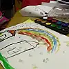 Adıyaman'ın Gölbaşı ilçesinde oturdukları ev yıkılan Mehmet Akif de (8) hatıralarını resme yansıttı. Binanın zemin katında yaşayan Mehmet Akif, resim çalışmasında apartmanın çatısına uzanan gökkuşağını sulu boyayla çizdi. Resmi yaparken deprem sonrasında yaşadığı korkuyu anlatan Mehmet Akif, zemin katında oturdukları apartmanın yıkıldığını ve depremde çok korktuğunu söyledi. Kahramanmaraş'tan gelen Ecrin Erol (9) ise resminde evinin yanına oynayacağı top havuzu, çiçekler ve güneş çizdi. Depremde evlerinin hasar gördüğünü dile getiren Ecrin, korktuğunu anlattı.