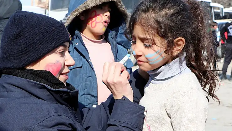 Kahramanamraş merkezli depremin vurduğu Malatya'da tüm kurumlar seferber olup, saha çalışması yürütürken, kadın askerler de çocuklara şefkatleri ile ablalık yapıyor.