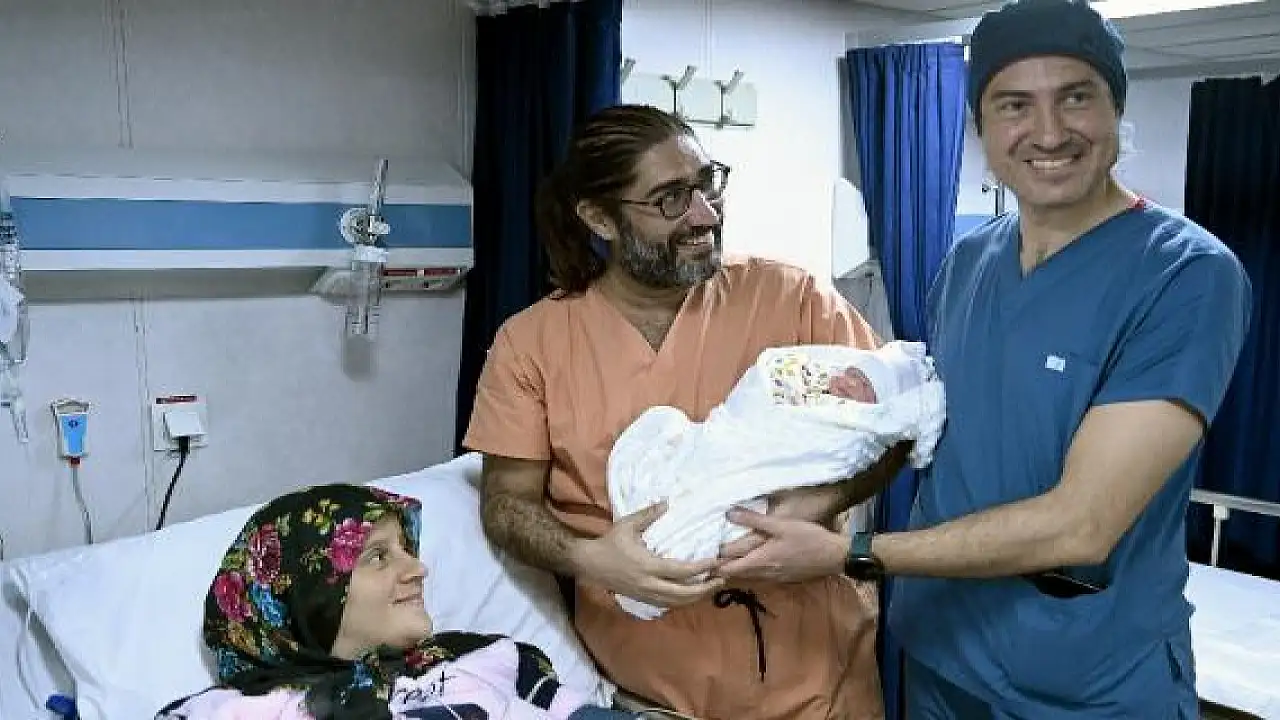 Kahramanmaraş merkezli depremlerin ardından yüzer hastaneye çevrilen Türk Silahlı Kuvvetlerinin (TSK) çıkarma gemisi TCG Bayraktar'a kontrol amaçlı gelen hamile kadın, kız çocuğu dünyaya getirdi.