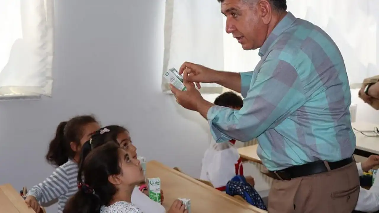 Adıyaman'da okullarda depremzede öğrencilere 1 Haziran Dünya Süt günü nedeniyle süt dağıtıldı.
