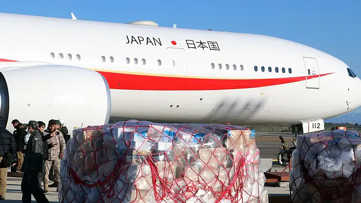 Depremzedeler için 15 ton tıbbi ekipman taşıyan Japon uçağı Adana'ya iniş yaptı