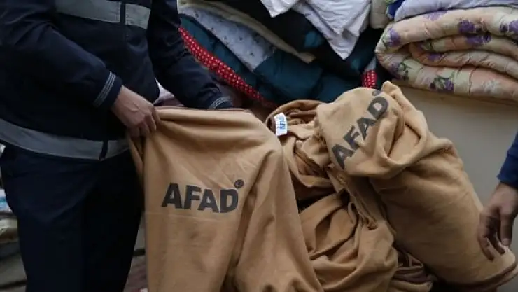 Söz konusu adrese operasyon düzenleyen ekipler, park yeri olarak kullanılan boş alanda AFAD logolu battaniye satışının yapıldığını belirledi.