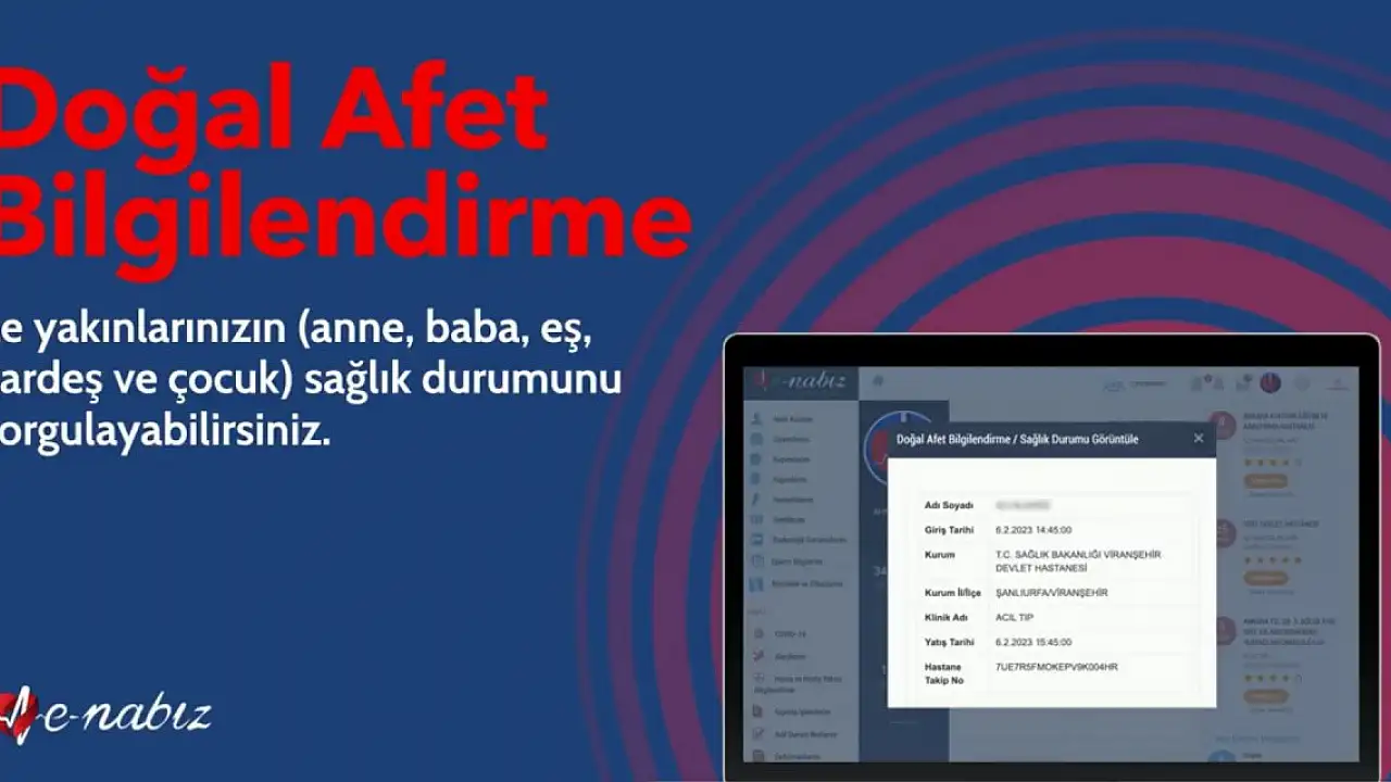 Sağlık Bakanlığı, deprem bölgesindeki yakınlarının sağlık durumu ve bulundukları sağlık kuruluşu hakkında bilgi almak isteyenler için e-Nabız profiline 'Doğal Afet Bilgilendirme' alanı ekledi.