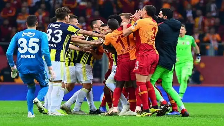 Galatasaray ile Fenerbahçe arasında oynanan derbide bitiş düdüğünün çalmasının ardından saha içi karıştı.