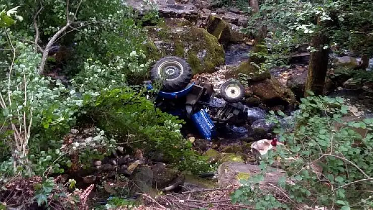 Dere yatağına devrilen traktörün sürücüsü ağır yaralandı