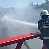 Dere yatağında alev alev yanan kepçeyi itfaiye söndürdü