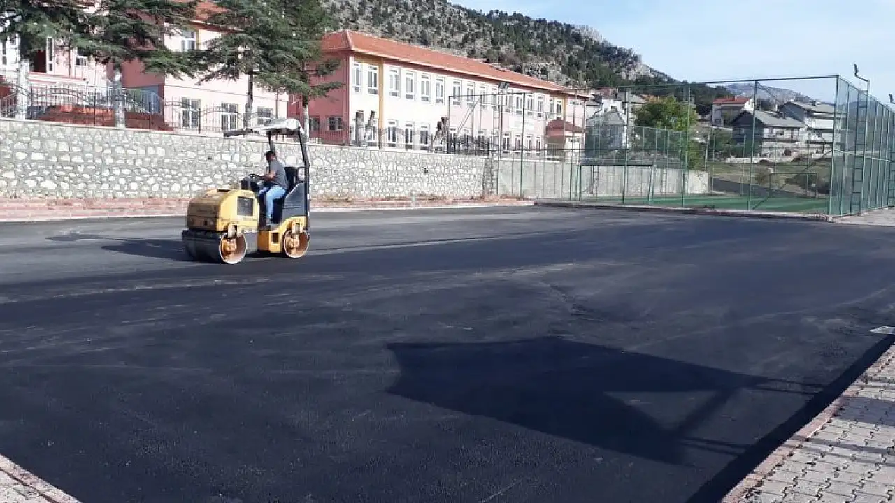 Derebucak Belediyesi okul bahçelerini asfaltla kaplıyor