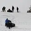 Konya’nın kış döneminde en çok kar yağışı düşen ilçelerinden birisi olan Derebucak’ın dağlık alanları İlkbahar mevsiminin gelmesine rağmen hala karla kaplı halde bulunuyor. Güneşin yüzünü göstermesi ile hava sıcaklıklarının artmasını fırsat bilen ilçede yaşayan aileler ise zaman zaman yakınlardaki dağlık alanlara çıkarak beyaz örtü altında piknik yapmanın keyfini çıkarıyor. Piknik esnasında dağlık alanların eğimli yamaç alanlarında kayak keyfi yaşayan çocuklar ve gençler ise renkli görüntüler oluşturuyor. Yanlarında getirdikleri naylon, branda, çuval ve iç lastikleri ile kar örtüsü üzerinde kayarak adrenalin yaşayan kayak tutkunu gençler, zaman zaman bu esnada kar üzerine savrularak küçük kazalar da yaşıyor. Kayak keyfi yaşayan bazı gençler bu adrenalin dolu dakikaları selfie çekerek ölümsüzleştirmeye çalışıyor.