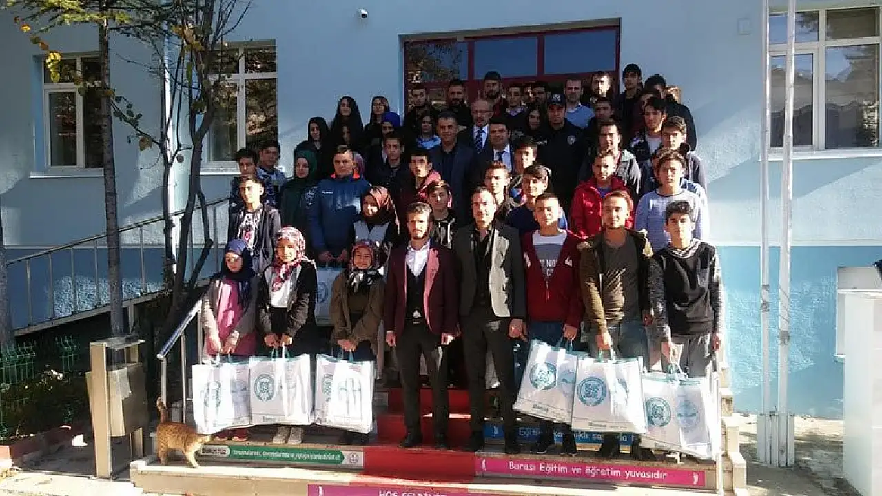 Kaymakam Doğan ile Başkan Kısa, bot dağıtım töreninde öğrencilerle sohbet ederek çeşitli hediyeler de verdi.
