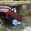 Dereye devrilen otomobildeki Murat Soyöz (57) ile eşi Gülizar Soyöz (54) boğuldu, komşuları Gülfidan Öncü (55) ağır yaralandı.