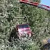 Hasar gören otomobil, getirilen vinç ile çıkarıldı.