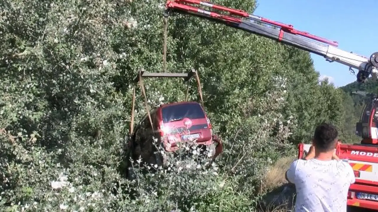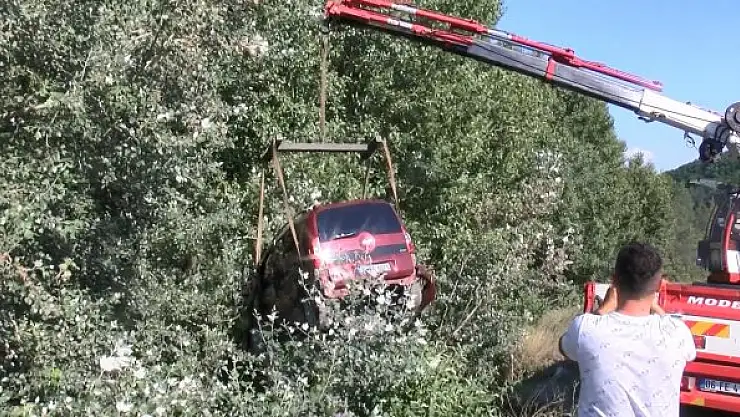 Dereye düşen otomobilden burunları bile kanamadan çıktılar