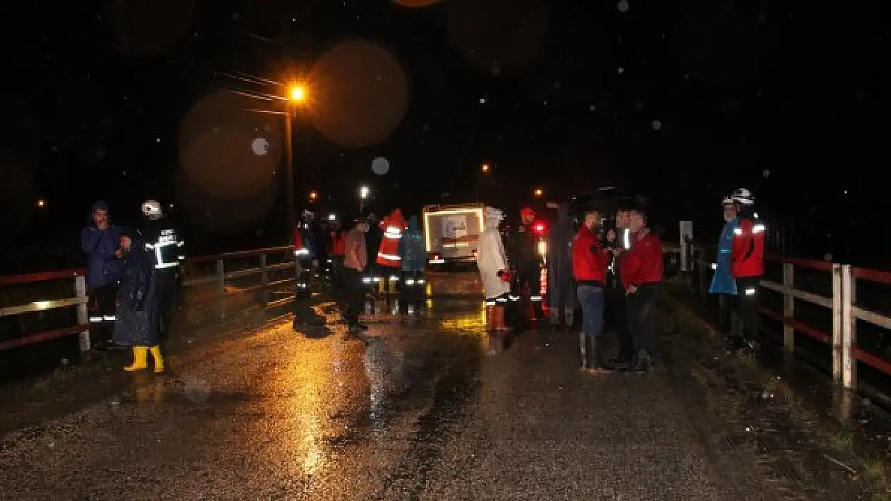 DÜZCE'de etkili olan sağanak yağış nedeniyle debisi yükselen Asar Deresi'ne 2 kişinin düştüğü iddiası üzerine arama çalışması başlatıldı.