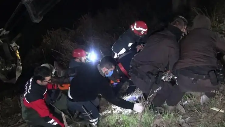 Dereye uçan minibüsteki sürücüyü kurtarmak için seferber oldular