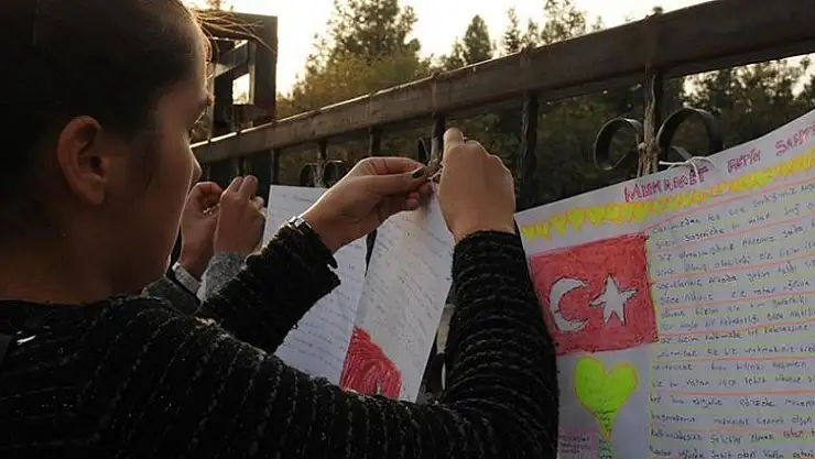 Türk bayraklarıyla süslenen mektup ve şiirler, 24 Kasım Öğretmenler Günü'nde Kaymakam Safitürk'ün ilçede bir süre öğretmenlik yapan eşi Ayşegül Safitürk'e ulaştırılacak.