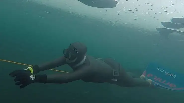 Dünya dalış rekortmeni milli sporcu Derya Can, buzla kaplı gölde 120 metrelik yatay dalışla yeni bir dünya rekoru kırdı.