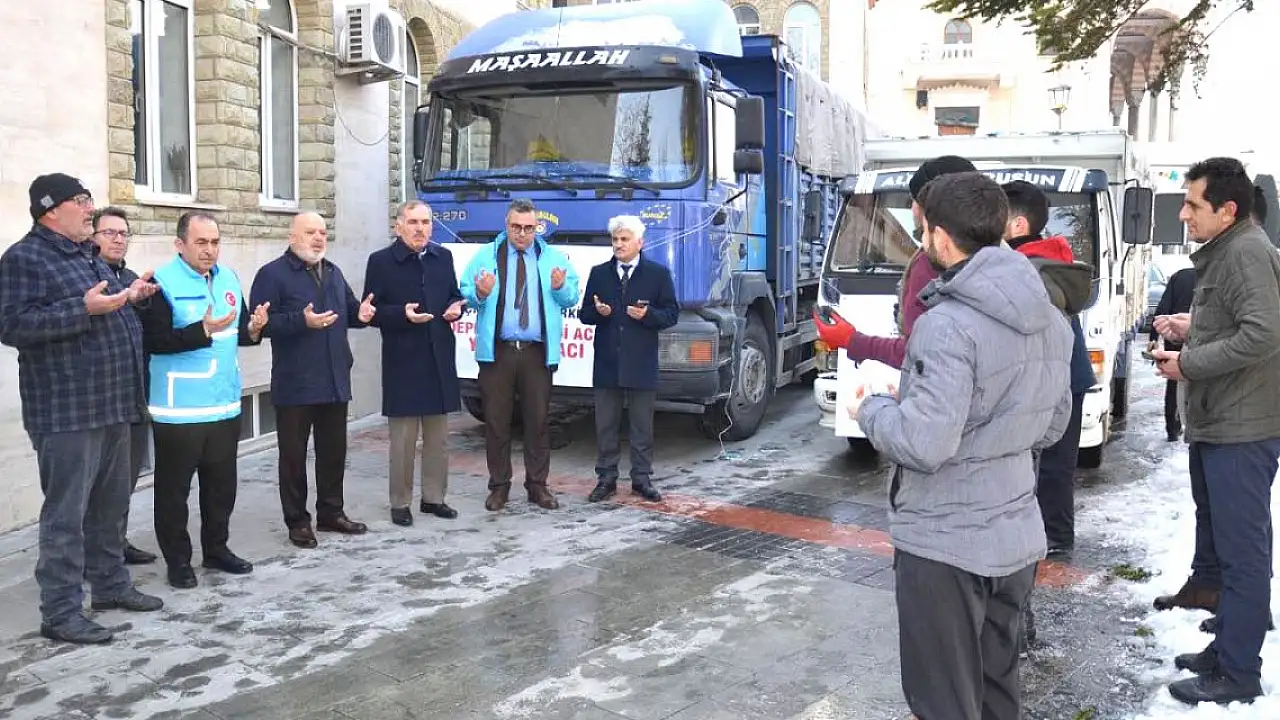 Konya'dan sekizinci destek ekibi, yardım malzemeleri ile birlikte deprem bölgesi Hatay'a dualarla uğurlandı.