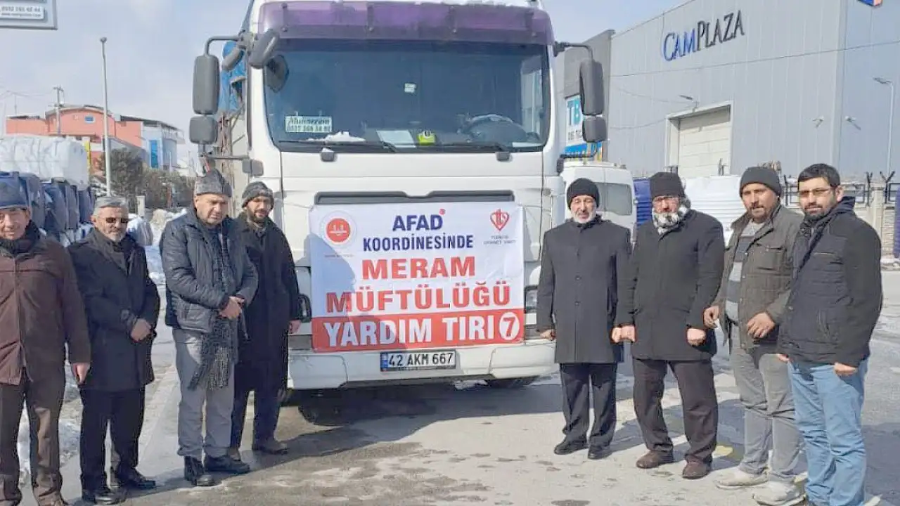 Konya İl Müftülüğü ve Meram İlçe Müftülüğü ekipleri, Hatay'daki depremzedelere destek olmak amacıyla hayırseverlerin yardımlarıyla hazırlanan ve deprem bölgesinde en fazla ihtiyaç duyulan malzemelerle birlikte Hatay'a yolcu edildi.