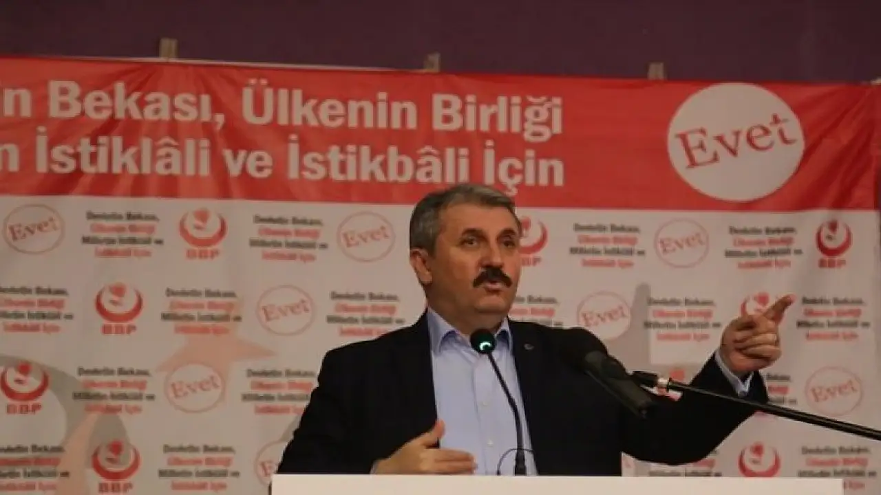 BBP'nin 24 yıllık siyasi hayatında, ülkesini, devletini, milletini önceleyerek siyaset yaptığını vurgulayan Destici, "BBP bugün de 'Evet' diyorsa, devleti, ülkesi, milleti için daha doğru olduğu için 16 Nisan'da 'Evet' diyecek, sandıktan da inşallah 'Evet' çıkacak. 16 Nisan'dan sonra 'Evet' çıktıktan sonra, çıkartılacak olan uyum yasalarında siyasi partilerin esası ve seçim kanununun demokratikleşeceğini, Türkiye'de temsilde adaletin, yönetimde istikrarın sağlanacağına inanarak 'Evet' diyoruz. Mevcut sistemden, ülkemiz, devlet ve de milletimiz için daha doğru ve daha iyi olacağına inandığımız için bu sistem değişikliğinin yanında durduk." ifadesini kullandı.