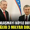 Cumhurbaşkanı Erdoğan ile görüşen Özbekistan Cumhurbaşkanı Şevket Mirziyoyev, 'Büyük büyük belgeler imzaladık. 3 milyar doların üzerinde değeri olan 50 yeni yatırım için mutabakata vardık' dedi.