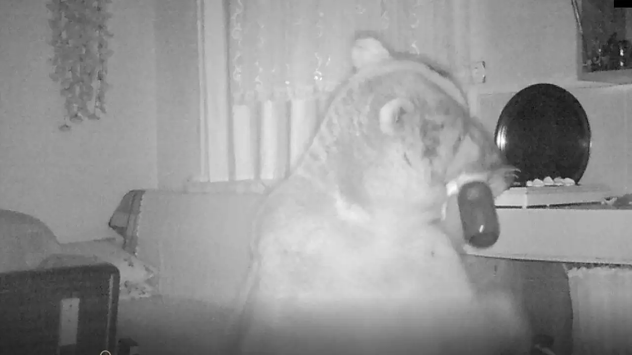 Kış uykusuna yatmayan dev ayı, 4 aydır Trabzon ile Gümüşhane arasında yer alan 2 bin 300 metre yükseklikteki Kadırga Yaylası Davunlu Obası'nda girilmedik yayla evi bırakmadı. Yayla evlerinin kapılarını ve pencerelerini pençeleri ile parçalayan dev ayı, aynı eve ikinci defa girince o anlar Fotokapan kamerasına yansıdı. Ayının girdiği evlere çevredeki aç tilkilerin de girdiği ve onların da yiyecek aradığı görüntülere yansıdı.