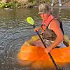 ABD'nin Nebraska kentinden Duane Hansen adlı adam, 383 kiloluk dev balkabağının içini oyarak küçük bir kayık haline getirdi.