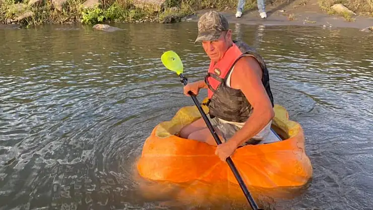 ABD'nin Nebraska kentinden Duane Hansen adlı adam, 383 kiloluk dev balkabağının içini oyarak küçük bir kayık haline getirdi. Hansen, balkabağıyla Missouri Nehri'nde 61 kilometre kürek çekerek rekor kırdı.