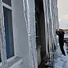 Ardahan'da kar yağışının ardından etkili olan soğuk hava nedeniyle çatılarda oluşan buz sarkıtlarının boyu 3 metreyi aştı.