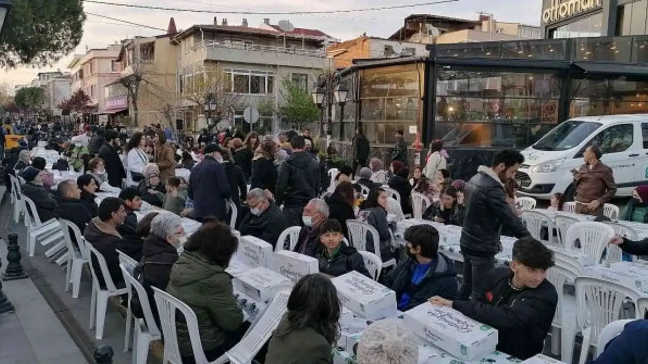 Tekirdağ'ın Süleymanpaşa ilçesinde öğrencilerin yoğun olarak yaşadığı mahalledeki yarım kilometrelik cadde trafiğe kapatılarak 5 bin kişilik iftar sofraları kuruldu. Üniversite öğrencileri ve mahalle sakinleri gönül sofralarında iftar yaparak Ramazan ayının maneviyatını hep birlikte yaşadı.
