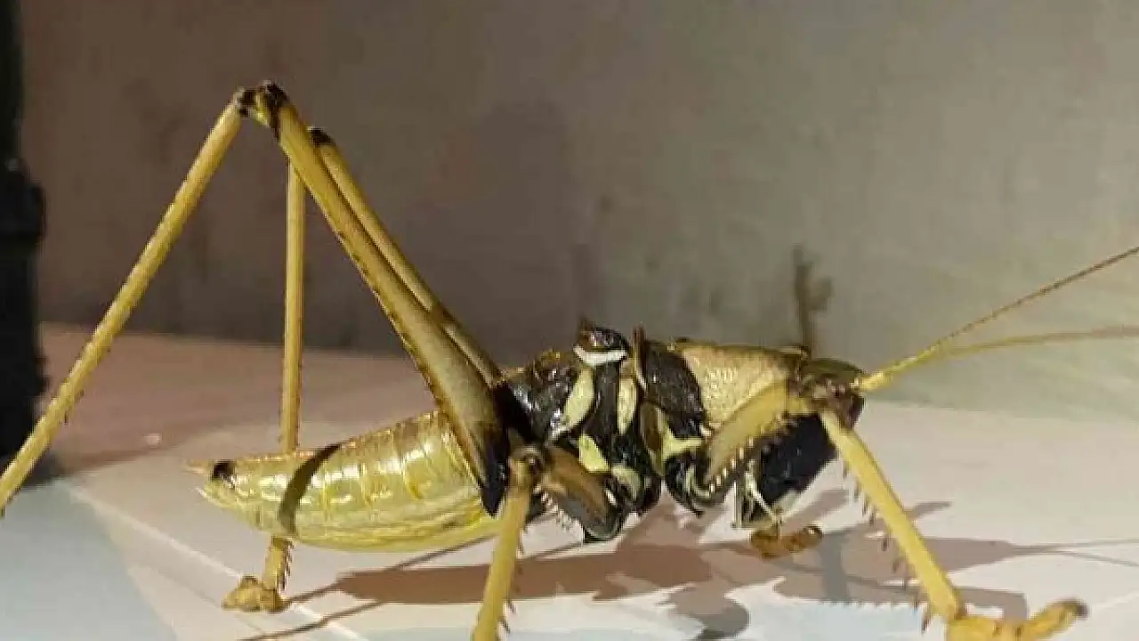 Türkiye'de zaman zaman görülen ve büyüklüğü ile dikkat çeken dev 'Çağaboğan' çekirgesi Elazığ'ın Sancaklı köyünde görüldü.