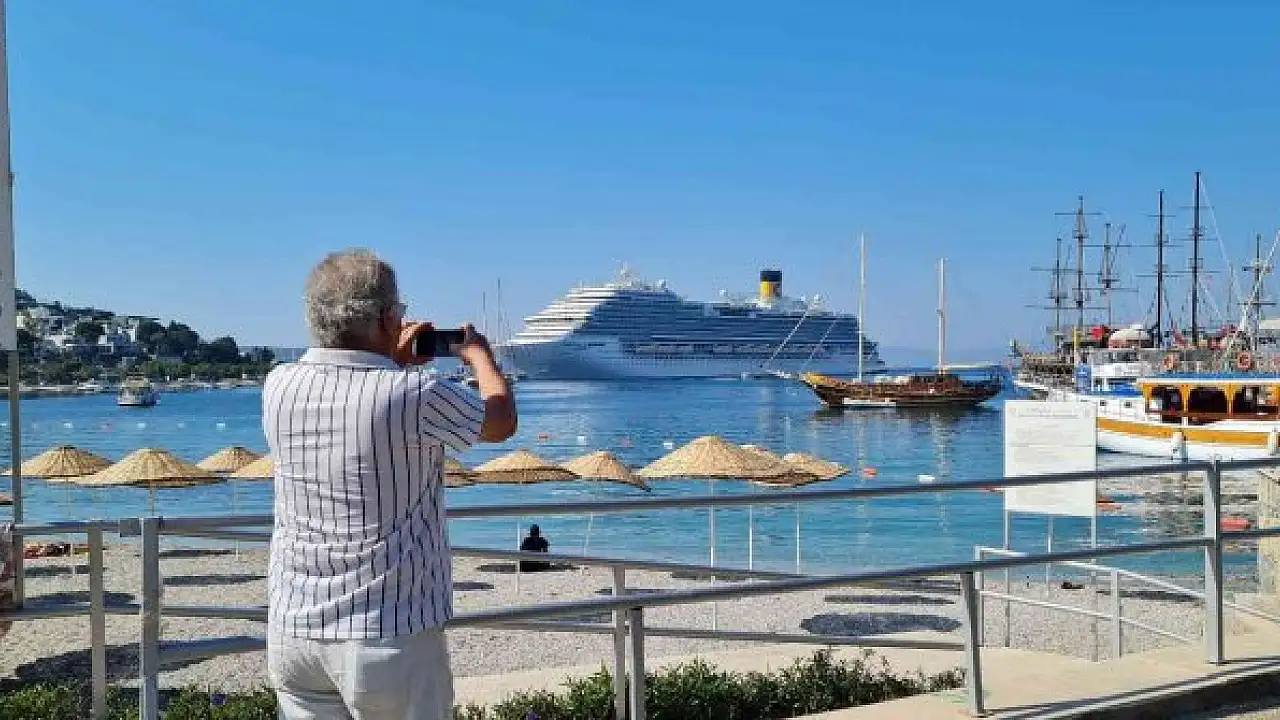 323 metre uzunluğunda 5 bin 260 yolcu kapasiteli "Costa Venezia" isimli dev gemi, bin 453 yolcu ile yeniden Muğla'nın Bodrum ilçesine geldi. Büyüklüğü ile dikkati çeken gemiye bakan bir daha baktı.