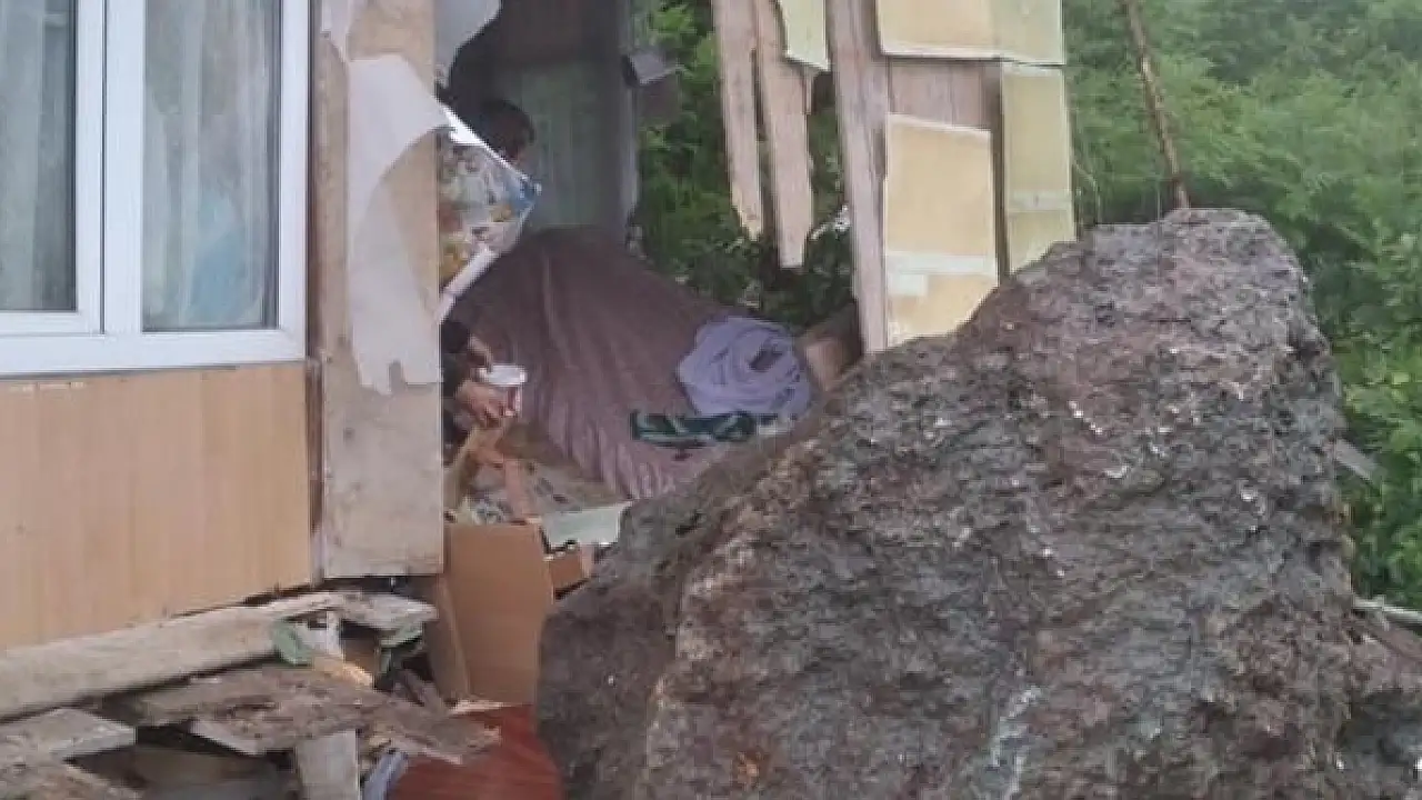 Dev kaya parçası önüne çıkan her şeyi yıkıp geçti