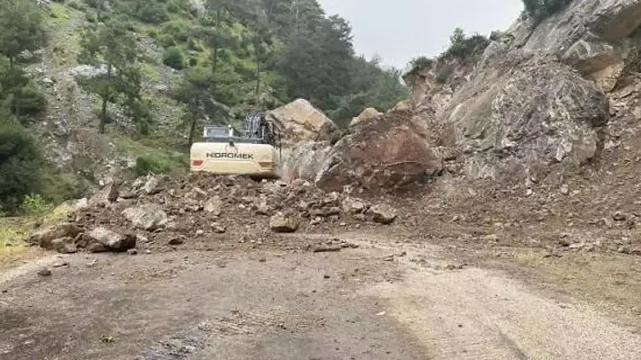 Bölgede çalışmalara başlayan İl Özel İdaresi ekipleri, büyük kayaları iş makinası gücüyle kaldırılamadı.