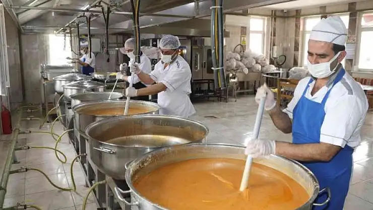 Ramazan ayında ihtiyaç sahibi ailelere her ilde olduğu gibi Elazığ'da da destek olunuyor. Bu çerçevede Elazığ Belediyesi Hayır Çarşısı mutfağında aşçılar tarafından her gün 2 bin 300 kişiye yetecek kadar 3 çeşit yemek yapılıyor. Aşçıların sabahtan başladığı mesaide hazırlanan yemekler, iftar saati yaklaşmaya başladığında presli makinelerde sıcak ve hijyenik olarak paketleniyor. Özenle paketlenen 3 çeşit yemek, ihtiyaç sahibi ailelerin kapılarına kadar ulaştırılarak kendilerine teslim ediliyor. Yemek dağıtımında özellikle yaşlı, engelli, yalnız ve ihtiyacı bulunan ailelere öncelik veriliyor.