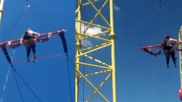 Öte yandan A.B.'nin dev salıncaktan düşmesi anı, cep telefonu kamerasına anbean yansıdı.
