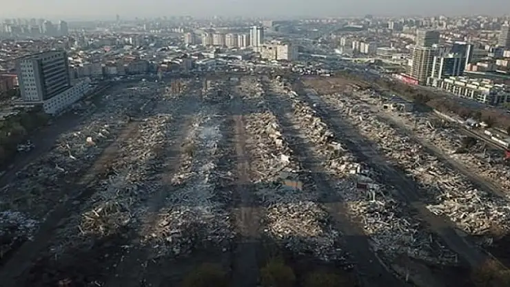 Zeytinburnu'ndaki Nakliyeciler Sitesi'nin yıkımı tamamlandı. Her gün yüzlerce kamyonun giriş çıkış yaptığı alanda halen yıkılan binaların molozlarının kaldırılması çalışmaları sürüyor.