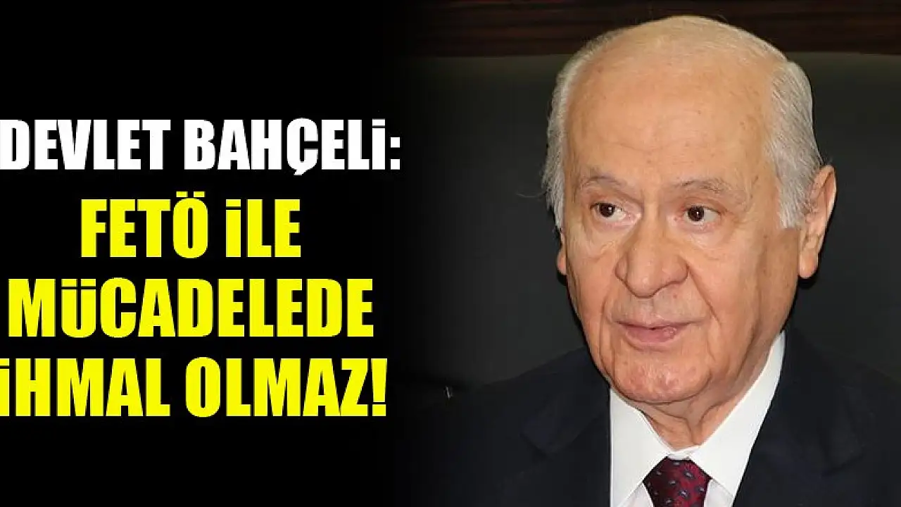 MHP Genel Başkanı Devlet Bahçeli, "FETÖ ile mücadele sonuna kadar sürdürülmelidir. Bu konuda tavsama olamaz, ihmal olamaz, hoşgörü olamaz, hatırlı ve arkası olan FETÖ'cülerin korunması veya kollanması diye bir şey söz konusu edilemez." dedi.